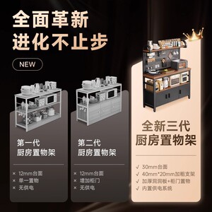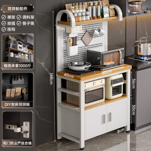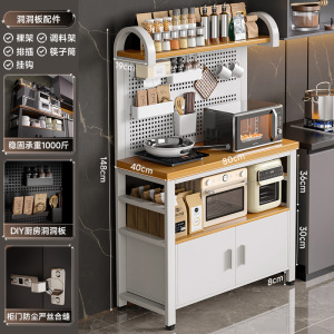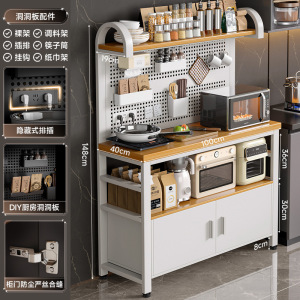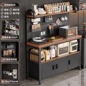 新款厨房置物架多功能洞洞板靠墙工作台微波炉锅具收纳架餐边橱柜