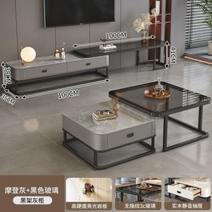黑架灰抽丨摩登灰茶几+茶玻电视柜