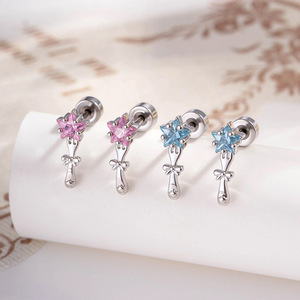 Hensen の新しいスイートボウフォークスタージルコンニッチデザイン軟骨ピアス耳骨釘