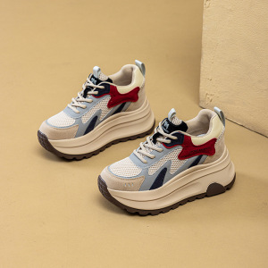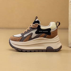 2025秋冬新款时尚厚底增高7cm潮流拼色百搭女士休闲鞋运动鞋棕色