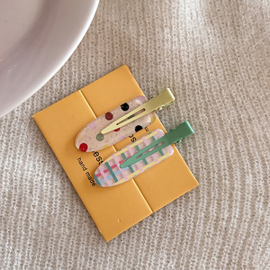 ジュースチェック柄ヘアクリップ2個、かわいいブドウとスイカのメイクアップクリップ、跡のないヘアクリップ、ヘアアクセサリー、グリッターパウダーバングクリップ