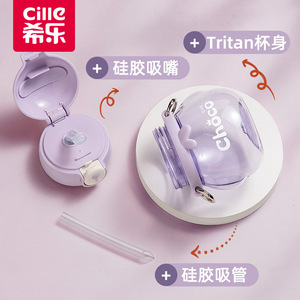 希乐儿童水杯吸管杯女小学生夏季防摔塑料杯子便携宝宝幼儿园水壶