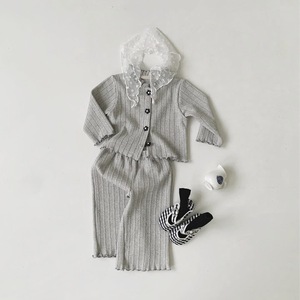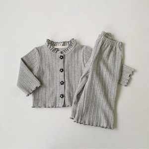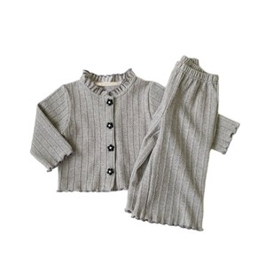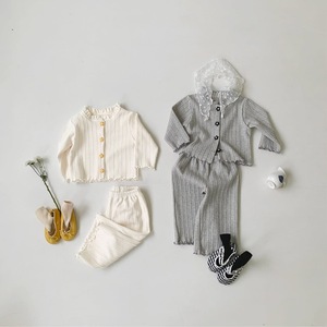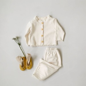 0-3岁女宝宝秋款套装婴儿小女孩立领小开衫+木耳边长裤两件套睡衣