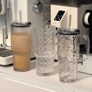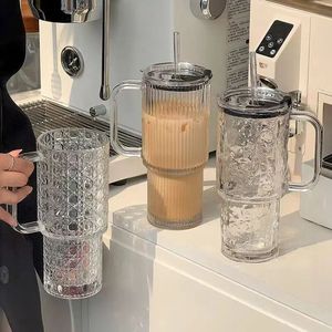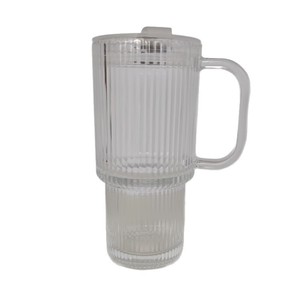 大容量巨无霸吸管杯创意ins风竖条纹玻璃水杯牛奶咖啡果汁冷饮杯