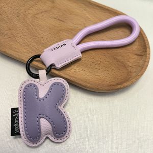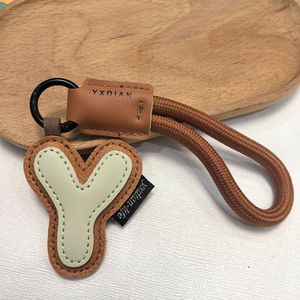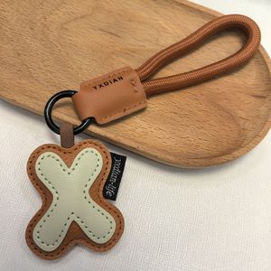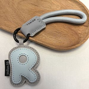 创意皮革26英文字母钥匙扣女精致皮质简约情侣一对包包挂件小礼品