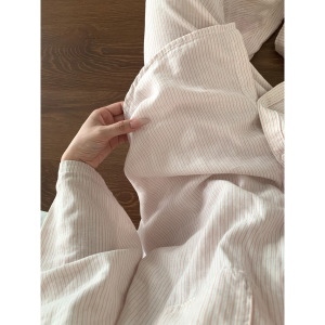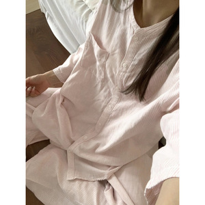 跨境专供外贸韩版条纹睡衣女春秋长袖套装高级感开衫家居服可外穿