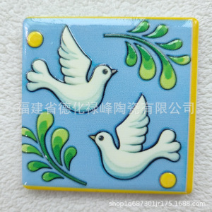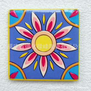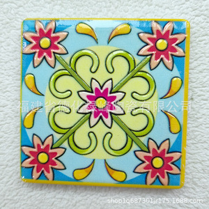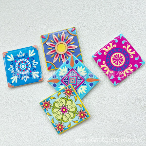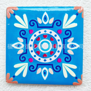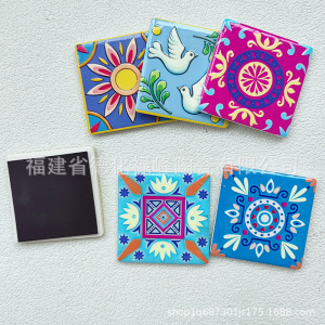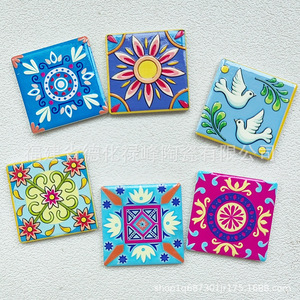 陶瓷冰箱贴工厂直销亮面冰箱波西米亚风软磁贴方形5cm陶瓷冰箱贴