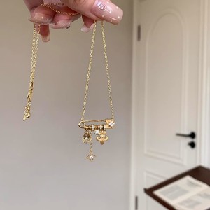 中古拉丝鸢尾花星芒黄水晶吊坠别针项链高颜值精致百搭锁骨链颈链