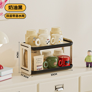 杯架轻奢高级感双层沥水整理架家用桌面厨房杯子大容量收纳置物架