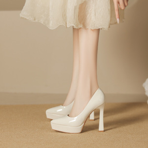 125-1 防水台不累脚单鞋女气质尖头细跟高跟鞋伴娘宴会职业工作鞋