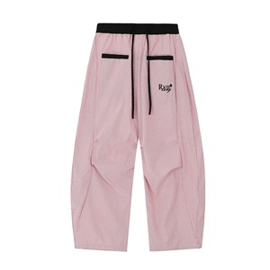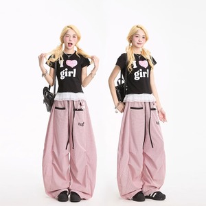 美式街头撞色条纹弯刀休闲裤女夏季垂感阔腿宽松显瘦运动裤