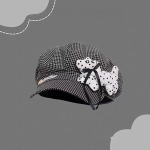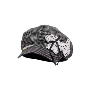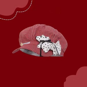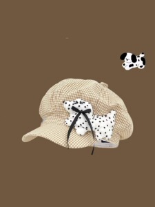 かわいい水玉模様の子犬チェック柄ベレー帽女性の春と夏の薄い顔見せ小さな八角形帽子大きな頭囲の画家の帽子