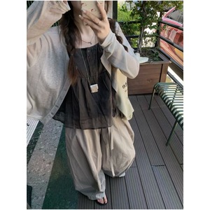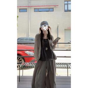 韩系穿搭一整套开衫+减龄背心吊带+高腰阔腿休闲裤 其他