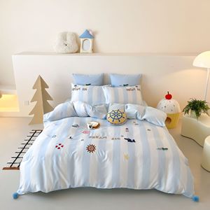 儿童卡通海洋贴布刺绣数码印花长绒棉四件套纯棉男孩被套床上套件