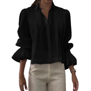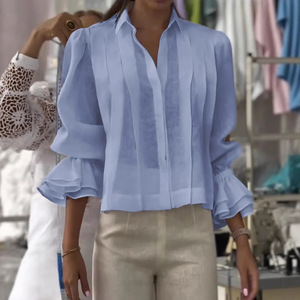 欧美跨境亚马逊夏季新款女装休闲宽松时尚打褶纯色拼接短袖衬衫
