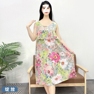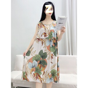 綿シルクノースリーブナイトガウン夏の女性の 2025 新しいスタイル胸パッドなし抗膨らみモーダルパジャマホーム服