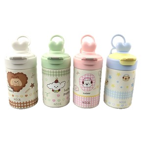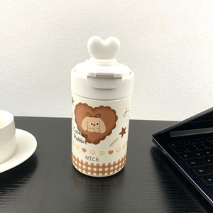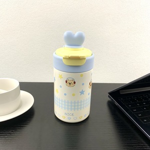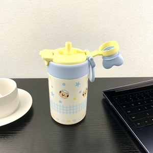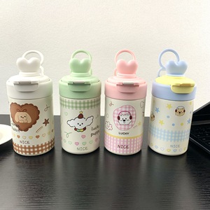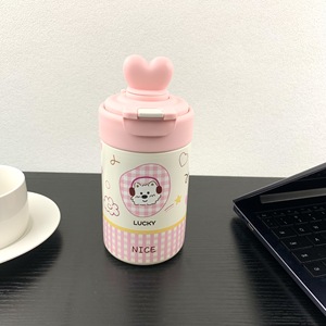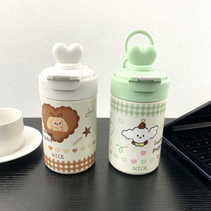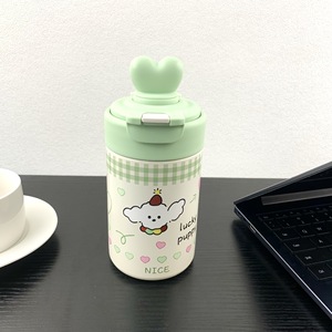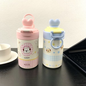 漫画かわいい子犬魔法瓶カップ女の子のための見栄えの良いポータブルストローカップホームオフィスワンカップダブルドリンクコーヒーカップ