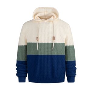 跨境2025年秋冬新款欧美男士提花长袖连帽衫暖色连帽运动衫毛衣
