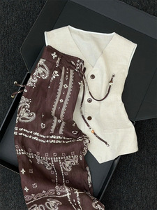 女性用の非常に見栄えの良いサマースーツ、2025年の新しいホットスタイル、オールドマネースタイルのリネンベストとパンツの2点セット