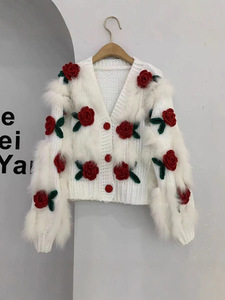2025 秋冬新スタイル多用途で優しく着やすいソフトワックスセーター刺繍立体ローズニットカーディガントップ女性用