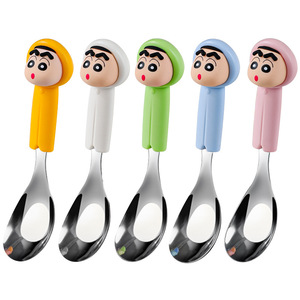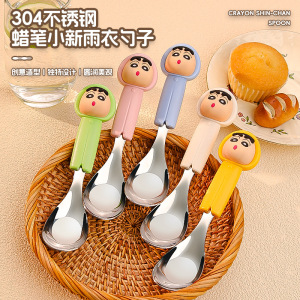 本物のクレヨンしんちゃん 304 ステンレス鋼レインコートインゴットスプーンかわいい漫画子供食べるスプーンベビースプーン