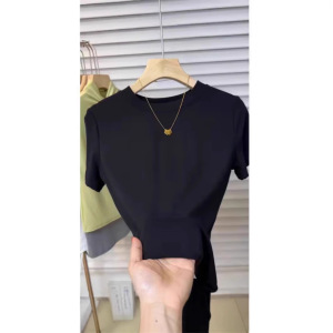 轻奢纯棉纯色短袖正肩圆领t恤女2025夏季新款轻奢t恤修身显瘦打底