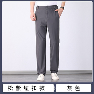 冰丝速干薄款中年男裤松紧腰宽松裤子夏季休闲裤高腰中老年爸爸裤