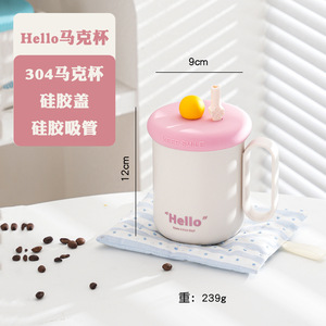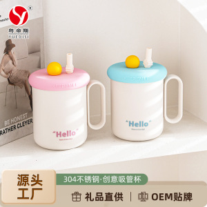 厂家直供 304不锈钢创意马克杯带盖上班便携高颜值吸管水杯 礼品