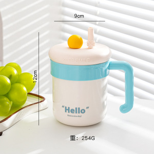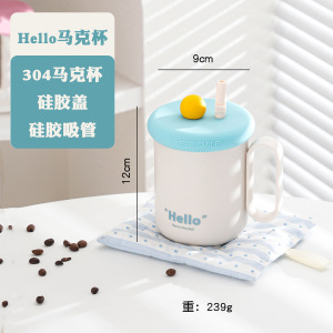蓝色Hello元气马克杯【带硅胶盖+硅胶吸管】