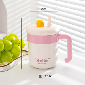 粉色Hello元气马克杯【带硅胶盖+硅胶吸管】