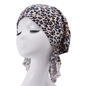 AliExpress スポットソース弾性ヒョウ柄フラワープリントターバンハット三つ編み包頭帽子女性海賊帽子化学療法帽子