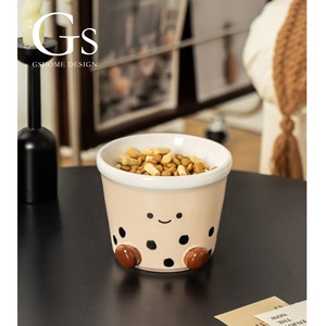 コーヒーミルクティーかわいいスタイル給水ボウルペットボウル水ボウルセラミック猫ボウルフードボウル首の保護大口径は転倒しにくい