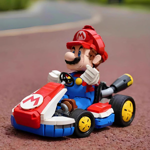 跨境兼容乐高超级玛丽马里奥赛车马力欧卡丁车拼装积木玩具礼物