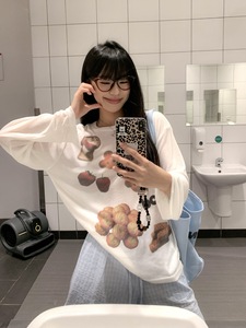 韩系慵懒风白色小熊印花长袖T恤女夏季圆领宽松薄款防晒罩衫上衣