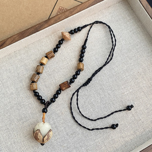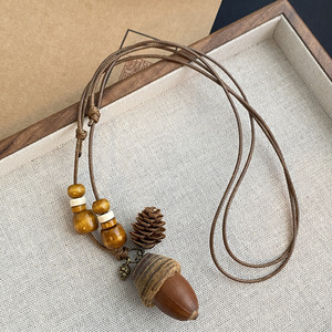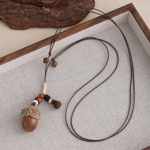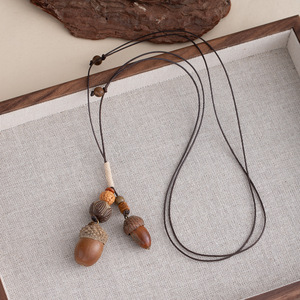 レトロエスニックスタイルの小さなドングリペンダント編み込みロングネックレス女性ニッチユニークなハイエンドシンプルな多用途アクセサリー
