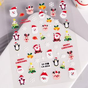 クリスマス雰囲気ネイルアートステッカー 5D レリーフ立体サンタクロースヘラジカネイルステッカーオーナメント CA スタイル