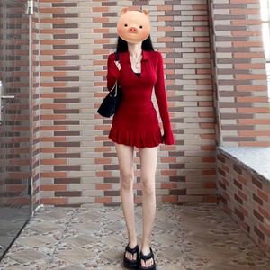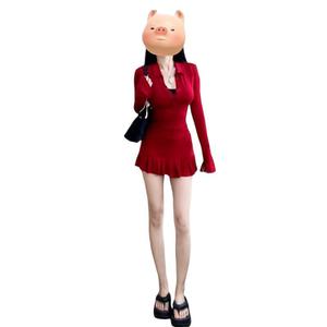 圣诞穿搭红色v领连衣裙子女2025新款秋冬季御姐风修身包臀裙女装