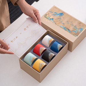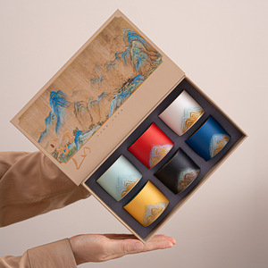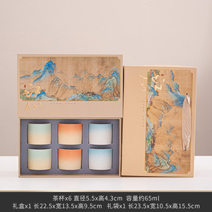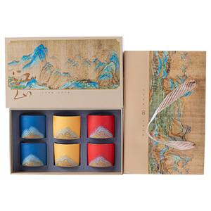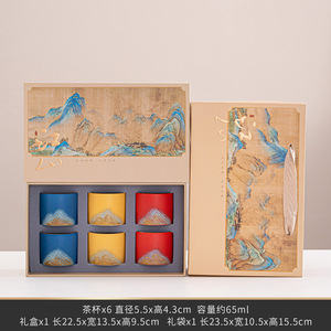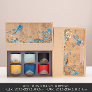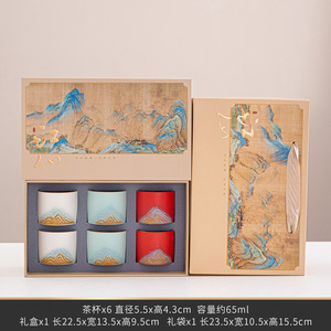 陶瓷茶杯千里江山主人杯礼盒装路宝茶具教师节礼品大号茶杯伴手礼