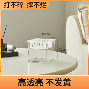 加厚透明亚克力花盆正方形水培绿植郁金香多肉花盆插花方缸摆件小