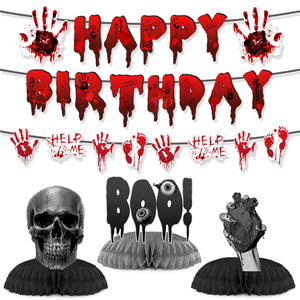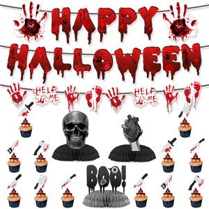 2025年アマゾンハロウィンデコレーション血まみれの旗ケーキインサートハニカムセット卸売カスタマイズ血手形