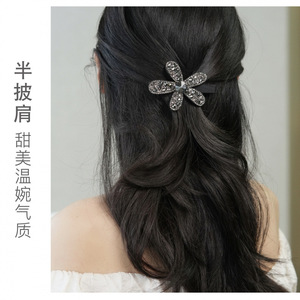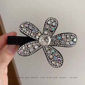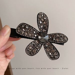 简约蝴蝶结水钻鸭嘴夹黑色丝绒高级感发夹侧边夹发卡发饰轻奢头饰