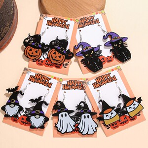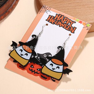 クロスボーダー人気ハロウィンシリーズイヤリングカボチャキャンディ小悪魔ゴースト黒猫ドワーフアクリルイヤリング