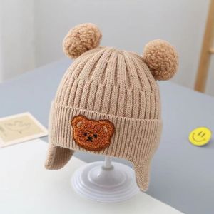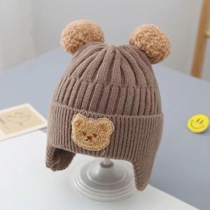 秋冬新款儿童保暖帽可爱小熊双球帽婴幼宝宝保暖护耳针织毛线帽