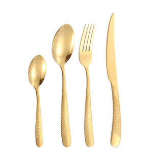 跨境亚马逊不锈钢星钻刀叉勺金色高档牛排刀餐刀甜品勺法式西餐具