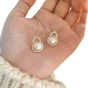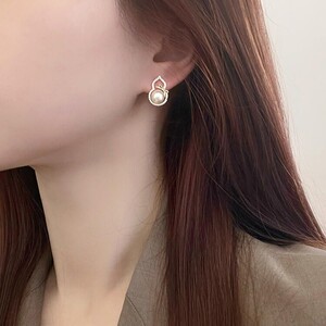 ins蝴蝶结葫芦珍珠耳钉S925纯银 复古中式轻奢高级感几何镂空耳环