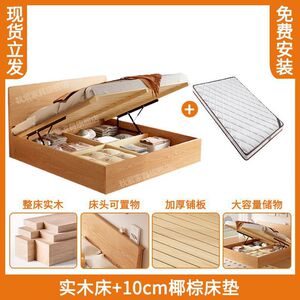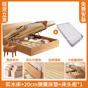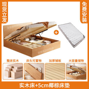 实木床气压高箱床双人1.8x2米储物家用橡胶木双人床1.2米床侧开床