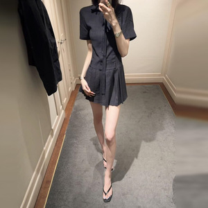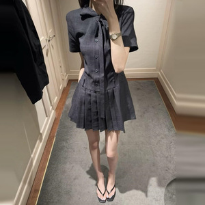 カレッジスタイルグレーリボンドレスレディース2025年夏新作小柄なAラインプリーツスカート多用途
