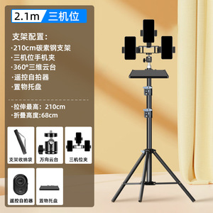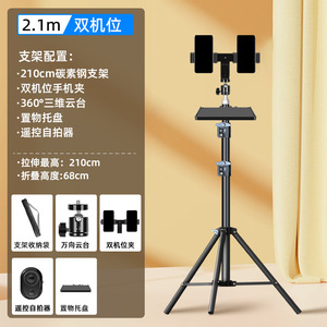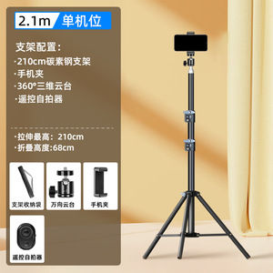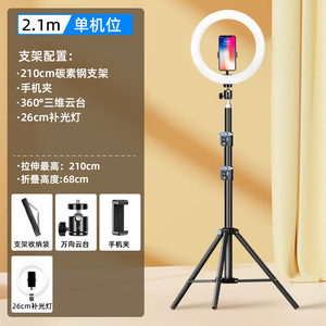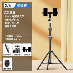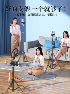 [炭素鋼] 2023年新モデルプロフェッショナル携帯電話ライブブロードキャストスタンド、補助光付き、美容、複数の携帯電話、ダブルカメラ位置