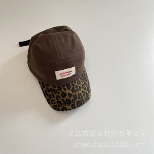 时髦复古潮帽儿童撞色豹纹拼色男童女童秋冬白标鸭舌帽棒球帽