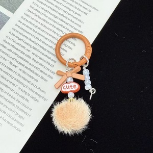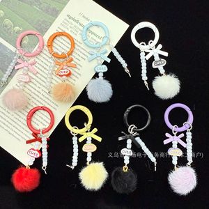 新款创意毛球手机链串珠diy手工毛球链盲盒萌粒挂链挂件钥匙扣